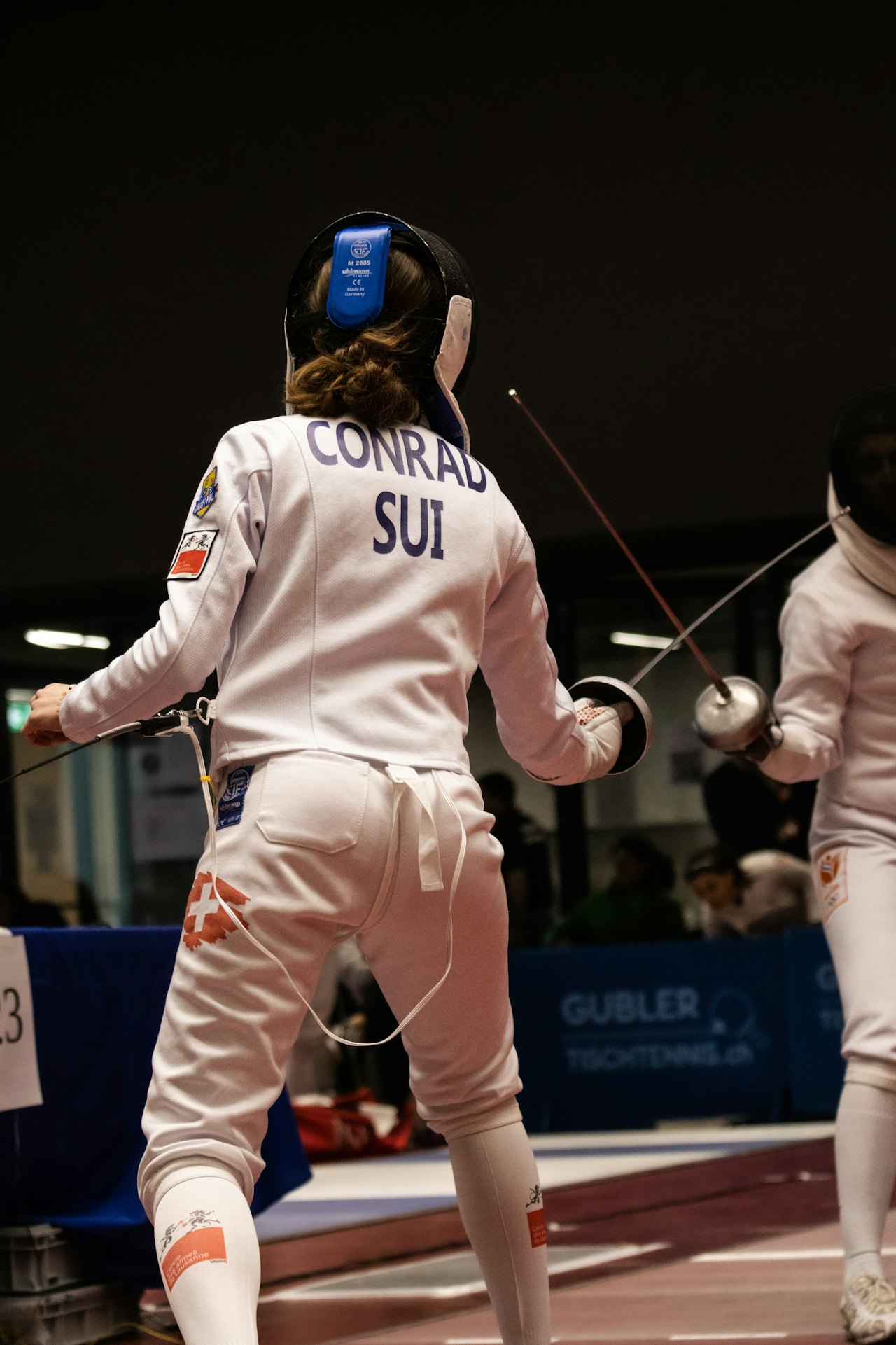with an Epee: En Gardé, Advance, Retreat, Attack, Parry 4 & 6.